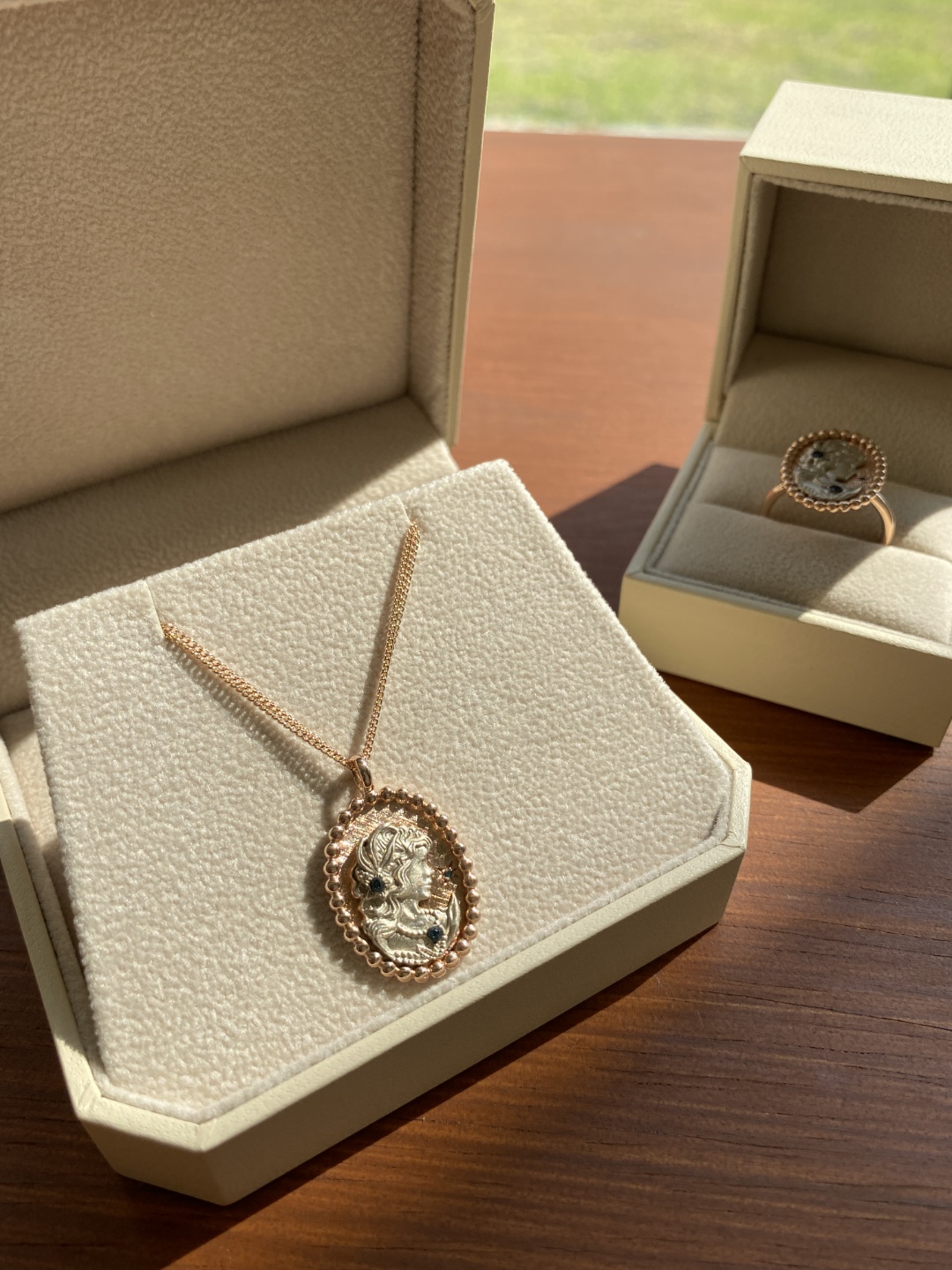 목걸이도 동일하게 여성이 조각되어 있는데요.