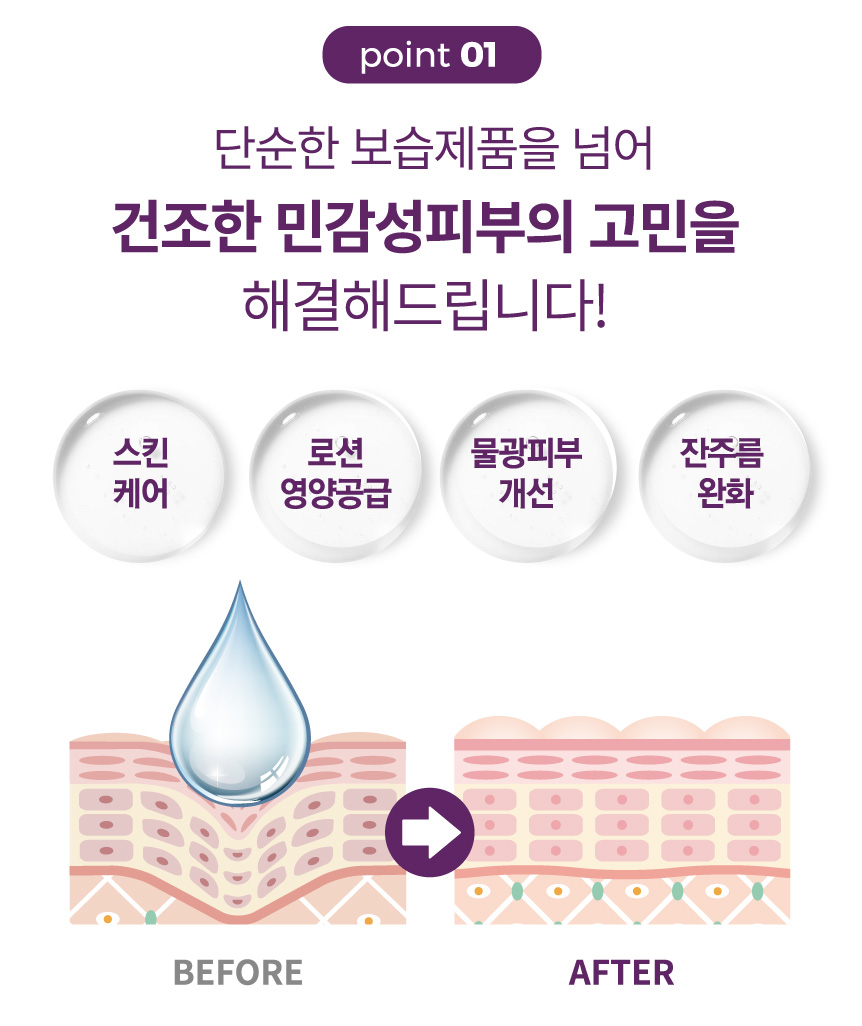 거친 피부에 영양공급과 진정 효과를 선물해보세요.